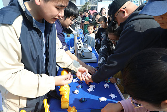 “智啟未來”展區,機器狗表演秀吸引了大批市民,不少老年人還排隊體驗“知數智·惠銀齡”數智助老項目,在志愿者的指導下模擬醫院線上掛號、線下取票、繳費,熟悉“12306”“攜程旅行”“高德地圖”等熱門旅行應用的購票功能,助力銀齡群體跨越數字鴻溝,在家門口樂享智慧生活。