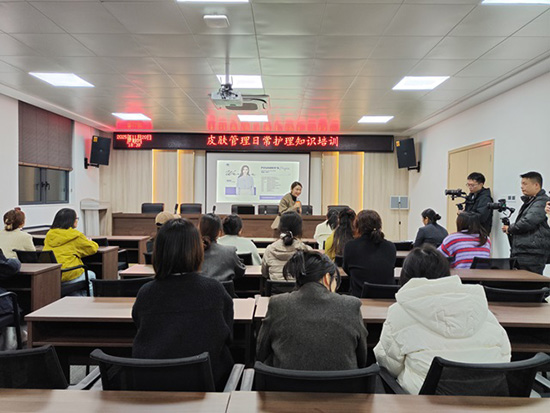 培訓(xùn)中,管愿愿老師結(jié)合自身專業(yè)知識與實(shí)踐經(jīng)驗(yàn),從皮膚類型科學(xué)判斷、不同膚質(zhì)日常護(hù)理要點(diǎn)、常見護(hù)膚誤區(qū)解析等方面展開講解。針對秋冬季節(jié)皮膚干燥、敏感等常見問題,她詳細(xì)演示了基礎(chǔ)清潔、保濕補(bǔ)水、防曬等核心護(hù)理步驟,并分享了挑選護(hù)膚品的實(shí)用技巧。