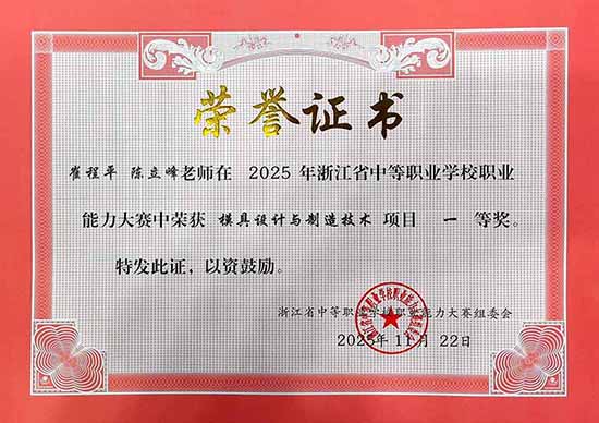 作為由浙江省教育廳主辦的省級權威賽事,不僅全面考評教師的專業技能功底、教學創新能力及團隊協作水平,也考查了選手們對行業前沿的把控力。此次“模具設計與制造技術”賽項聚焦復雜零件三維建模、模具結構創新設計、數控編程與精密加工全流程,對參賽團隊的綜合素養提出了極高要求。該校青年教師崔程平、陳立峰組成的參賽團隊,憑借過硬實力與默契協作脫穎而出,最終以總分第一的優異成績斬獲該賽項一等獎,為學校贏得了榮譽!