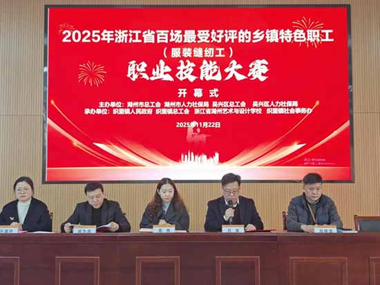 為夯實產業人才基礎、弘揚精益求精的工匠精神,為湖州市制造業高質量發展注入強勁人才動能,11月22日,2025年浙江省百場最受好評的鄉鎮特色職工(服裝縫紉工)職業技能大賽在浙江省湖州藝術與設計學校順利舉行。本次大賽由湖州市總工會、湖州市人力社保局、吳興區總工會、吳興區人力社保局主辦;織里鎮人民政府、織里鎮總工會、織里鎮社會事務辦、湖州藝術與設計學校共同承辦。