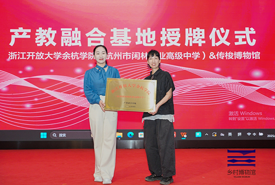 產(chǎn)教融合,共赴美好。活動伊始,浙江開放大學(xué)余杭學(xué)院(杭州市閑林職業(yè)高級中學(xué))院長包胡凌泰代表學(xué)院向傳梭博物館館長鄭芬蘭女士授牌,開啟院館深度合作新篇章。包胡凌泰表示:“以棉花為媒,我們不僅要傳承‘耕織傳家’的千年智慧,更要探索非遺教育的當(dāng)代轉(zhuǎn)化路徑。”