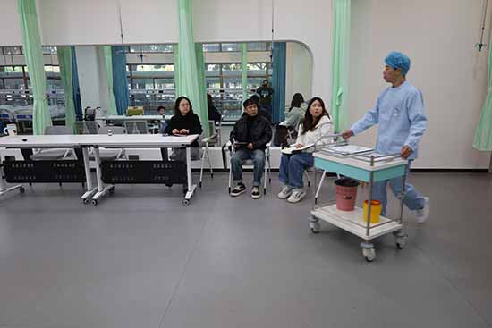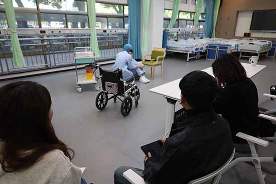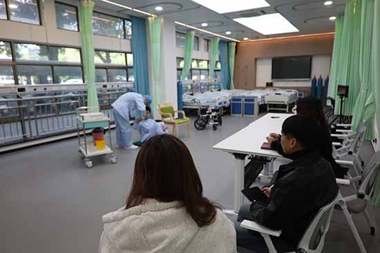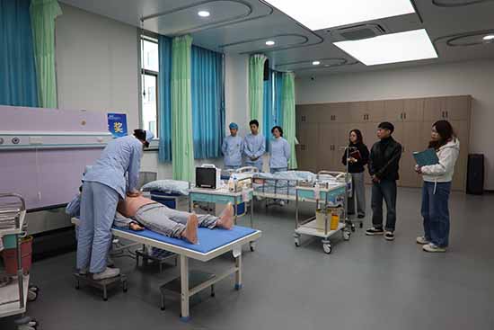 在陳杰校長的陪同下,徐飛波校長一行首先參觀了護理實訓基地。護理實訓基地則以其高度仿真的臨床環境、完善的實訓設備和規范的教學流程,給來訪嘉賓留下了深刻印象。寧波第三技工學校的護理教師還深入到海寧衛生學校(海寧市綜合高級中學)護理備賽團隊,觀摩學生備賽演練。