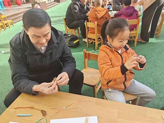 活動中,浙江開放大學趙師紅博士、杭州社區大學郭維娜、濱江區社區學院葉劍煒老師也來到現場,一邊觀摩祖輩們的創作,一邊交流研討老少共學組織形式,還不時拿起作品點贊:“這樣的代際互動太有意義了,既傳承了非遺技藝,又拉近了祖孫感情。”