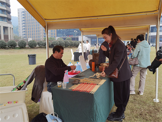活動現(xiàn)場,三大安吉非遺技藝同臺亮相,形成了一道亮眼的文化風(fēng)景線。除了備受關(guān)注的非遺竹編,細(xì)膩靈動的非遺石畫也吸引了大批市民駐足——畫師以石為紙,用色彩勾勒出山水、花鳥,讓普通的石頭擁有了文化溫度;而色彩絢麗的非遺畬族彩帶編織更具互動性,市民們在傳承人指導(dǎo)下,親手穿梭絲線,感受畬族文化中蘊(yùn)含的匠心與祝福。三種技藝各有特色,共同為市民打造了一場可看、可觸、可體驗(yàn)的非遺盛宴,不少家長帶著孩子沉浸式參與,在動手實(shí)踐中加深了對傳統(tǒng)文化的認(rèn)知與喜愛。