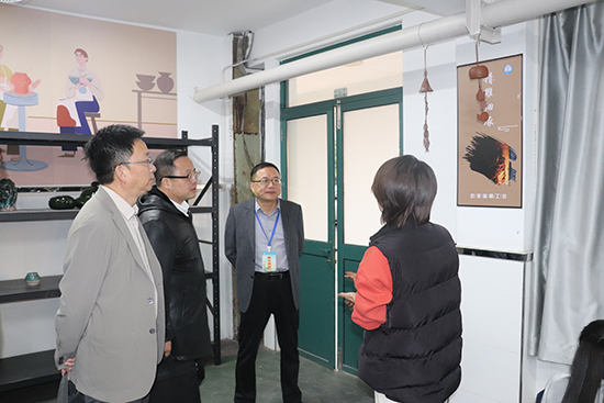 調研組一行深入校園實地考察,首先來到“職小匠·云鏈工坊”校園驛站,詳細了解學校創新性的快遞運營模式,對其在培養學生職業技能和創業能力方面的實踐價值給予充分肯定。隨后調研組參觀了海陶工坊,觀摩學生現場制作海陶作品,領導們仔細詢問制作工藝,對學校將洞頭本土工藝傳承與職業教育相融合的特色做法表示贊賞。