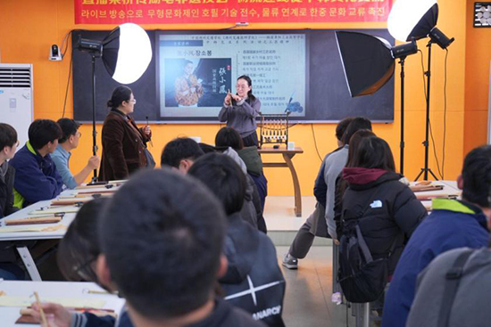 此次活動,學校邀請了國禮湖筆制作大師、國家級非遺傳承人、首屆國家鄉村工匠名師張小鳳老師,進行湖筆開筆流程授課,讓韓國師生沉浸式感受中國傳統手工藝的魅力。