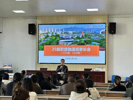 在職普融通班的集中會議上,學(xué)校副校長費永軍就家長普遍關(guān)心的“融通后的專業(yè)分班”問題,進行了細致的政策解讀與發(fā)展前景分析,并強調(diào)了家校協(xié)同育人的重要性。