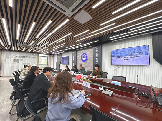 檢查工作伊始,學校舉行了簡短的歡迎會。會上,副校長陸婷代表學校對浙江科技大學專家組的到來表示熱烈歡迎,并就學校中本一體化合作辦學項目的整體發展概況、人才培養特色、教學管理機制以及階段性成果進行了系統介紹。她強調,學校始終高度重視與浙江科技大學的合作,致力于通過優勢互補、資源共享,共同構建貫通中職與本科階段的一體化人才培養立交橋。