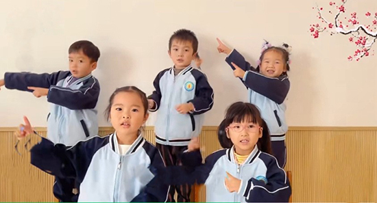 “小雪片片大地蒙,北風陣陣寒意生……”中班的幼兒們伴著輕快的音樂,跳起了小雪主題手勢舞。稚嫩的小手時而舒展,模擬雪花漫天紛飛的模樣;時而輕揮,模仿小雪人招手問好的姿態,靈動的動作搭配甜美的笑容,將小雪節氣的靈動與可愛展現得淋漓盡致。在歡快的律動中,孩子們不僅鍛煉了肢體協調性,更在沉浸式體驗里加深了對小雪節氣的認知與喜愛。