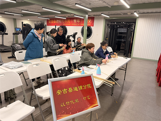 眾多市民參與,課程展示亮點多。來自安吉縣各個村鎮的市民踴躍參與,讓現場充滿濃厚的學習氛圍。當天不僅有五門課程同步開課,覆蓋中醫養生、時尚排舞、育嬰員、國畫、非遺竹編等多元領域,滿足不同群體的學習需求。學校的特色班級也帶來精彩展示。非遺剪紙班、創意手工編織班、非遺刺繡班、手繪團扇班紛紛拿出師生精心創作的作品,既展現了教學成果,也讓傳統文化與創意手工走進大眾視野。