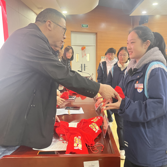 儀式中最溫暖的一幕莫過于“能量傳遞”環(huán)節(jié)。學(xué)院領(lǐng)導(dǎo)親手為每位高三學(xué)生送上精心準(zhǔn)備的“能量包”——紅色包裝寓意“鴻運(yùn)當(dāng)頭”,內(nèi)含美好祝愿,寄托著“一舉高中、金榜題名”的殷切期望。接過禮物的瞬間,學(xué)子們臉上洋溢著感動(dòng)與自信,這份來自學(xué)院的深情支持,將化作他們奔赴考場(chǎng)的強(qiáng)大底氣!