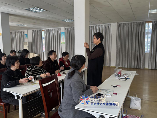 活動前期,社區網格員們通過網格群通知、企業對接、入戶邀請等多種方式廣泛宣傳,吸引了眾多老年人和企業職工踴躍報名。活動當天,社區特別邀請了非遺宋錦技藝傳承人孫人建現場授課,為參與者帶來專業細致地的指導。
