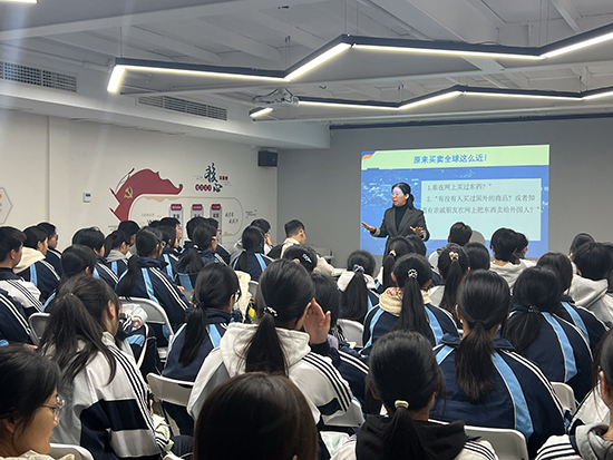 王老師結(jié)合行業(yè)前沿案例,詳細(xì)解析了跨境電商的發(fā)展趨勢(shì)、核心崗位及能力需求,更針對(duì)中職學(xué)子的成長(zhǎng)特點(diǎn),鼓勵(lì)大家“不要因中職生的身份妄自菲薄,明確目標(biāo)、深耕技能、多練多做,同樣能在職業(yè)舞臺(tái)上嶄露頭角”。親切的話語(yǔ)與實(shí)用的建議,讓同學(xué)們備受鼓舞。