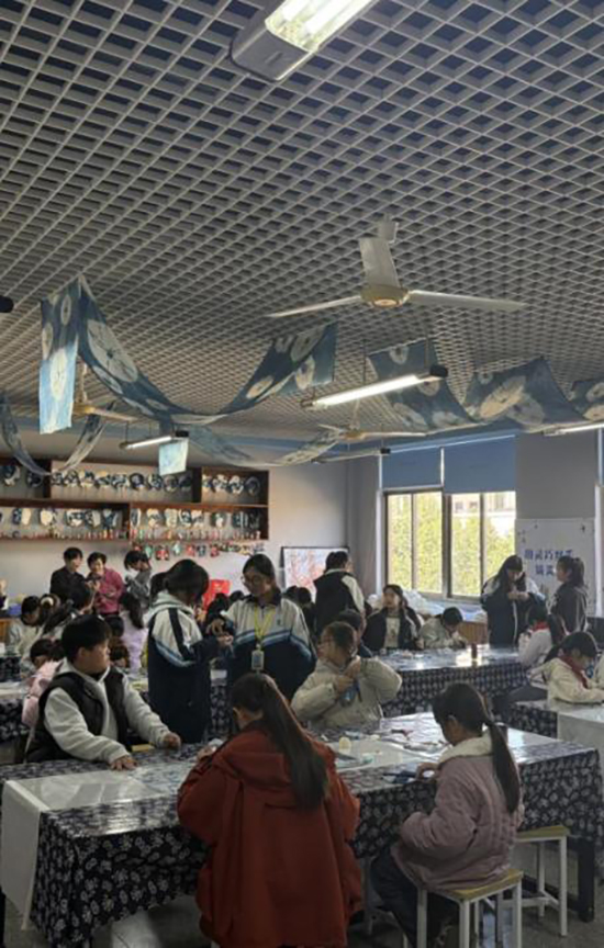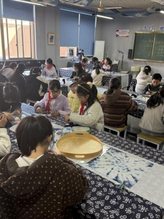 活動伊始,剡溪小學的教室里便彌漫著探索與期待的氣息。桌上擺放的,不再是普通的書本與文具,而是一塊塊經由特色藍染課程浸染出的、色澤深邃、紋路獨特的藍印花布。這些布料,如同承載著天空與海洋秘密的畫卷,正等待著小小藝術家們賦予它們新的生命。
