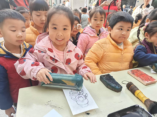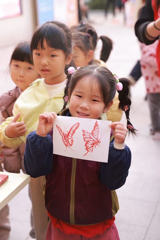 最讓孩子們興奮的,莫過于雕版、盤紙制作的親身體驗環(huán)節(jié)。在張西琴和工作人員的指導(dǎo)下,孩子們小心翼翼地操作工具,完成雕版拓印的每一個步驟,又專注地將彩紙彎折、盤繞,制作屬于自己的盤紙作品。雖然動作略顯稚嫩,但每一個孩子都投入十足,當(dāng)帶著墨香的雕版作品、造型別致的盤紙手作在手中成型時,孩子們的臉上都綻放出燦爛的笑容,在歡聲笑語中,非遺文化的魅力悄然浸潤童心。
