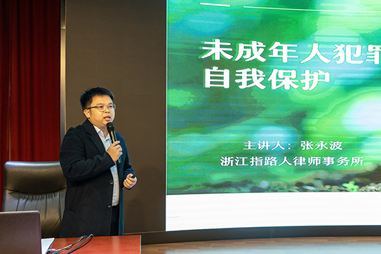 浙江指路人律師事務(wù)所主任張永波深耕法律領(lǐng)域十余載,此次他聚焦“未成年犯罪的預(yù)防與自我保護(hù)”主題,用詳實(shí)的案例、通俗的語(yǔ)言展開宣講,還與現(xiàn)場(chǎng)學(xué)生積極互動(dòng),進(jìn)一步筑牢了未成年人的法律保護(hù)意識(shí)。