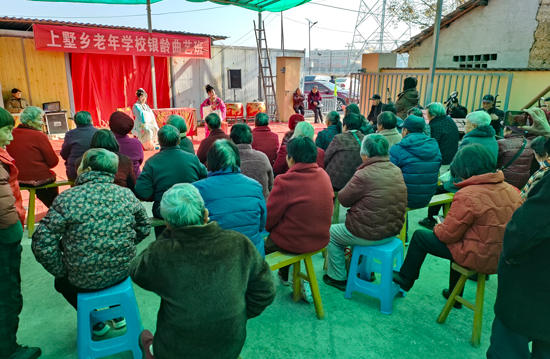 12月4日上午,上墅鄉(xiāng)劉家塘村田頭農舍間一塊空地上格外熱鬧,村中長者早早就搬好長凳端坐等候,由安吉縣社區(qū)教育學院上墅學習中心組織的“送戲進村越劇專場”活動在此舉辦,為當?shù)卮迕駧砹艘粓鼍市路f的戲曲展演活動。