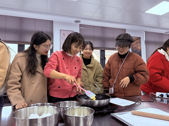 12月4日下午,天子湖成校烘焙培訓室內香氣四溢,28名來自天子湖第二小學的班主任齊聚于此,參加由該校組織的牛軋糖烘焙技能培訓,本次培訓由專業教師常菲菲授課。