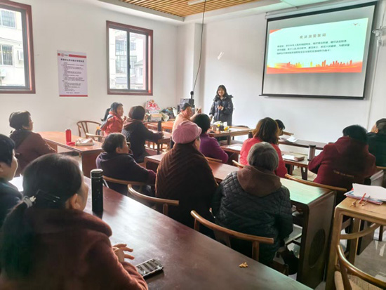 12月4日,在第十二個國家憲法日當天,安吉縣社區教育學院天子湖分院鄣吳學習中心熱鬧非凡,一場面向老年學員的憲法宣傳教育活動在此溫情開展。正值全國第八個憲法宣傳周與第五個“憲法與浙江”主題宣傳月,活動以“學習宣傳貫徹習近平法治思想,推動憲法深入人心”為主題,讓憲法精神走進老年群體。?