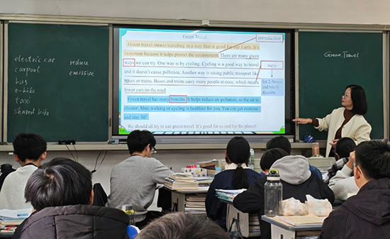 李美玲老師的《Green Travel》寫作課緊扣時代脈搏,以綠色出行為主題,通過范文引路,沿著“總述點題—方式鋪陳—優點闡釋—號召收尾”的清晰脈絡,培養學生結構化表達能力。課堂將生態理念自然融入教學,學生在提升英語寫作水平的同時,增強了環保意識和社會責任感。