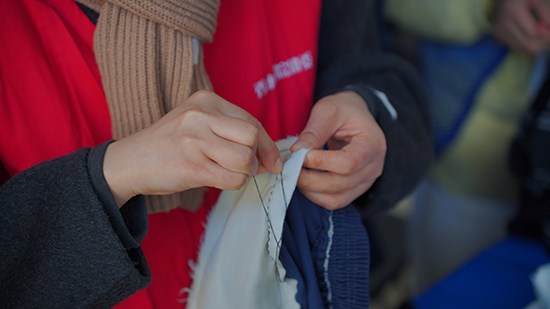 服裝設計與工藝專業學生依托技術優勢,承擔核心修補任務,在魏小勇老師的指導下,系統學習服裝面料識別與多種修補工藝。21服裝班柳蒙蒙、葉肖菲等同學因技能扎實,獲得首批實踐名額。