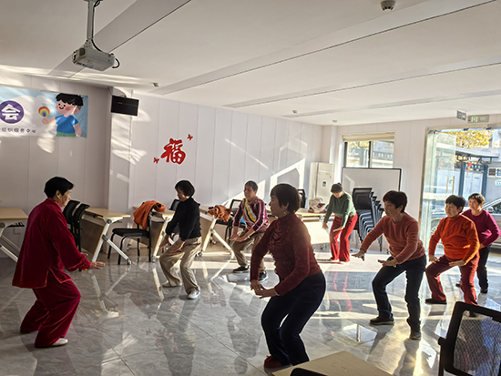 第一次課程在老年居民們略顯生疏但完整的演練中結束。曹素珍阿姨額頭滲出細汗,臉上卻掛著滿足的笑容:“出了一身汗,渾身舒暢!下周四我一定準時來。”
