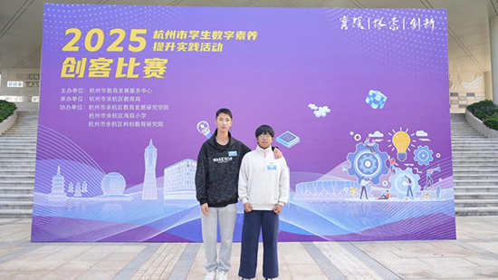 近日,2025年杭州市學生信息素養提升實踐活動創客競賽在余杭海辰小學舉行,大賽以“實踐、探索、創新”為主題,旨在激發青少年創新精神,提升數字實踐能力,培養面向未來的信息科技人才。富陽區職業教育中心25數媒1班孫恒陽和25物聯網班江令聞同學在周霖老師帶領下,經過區賽選拔代表富陽區高中組參加“創意智造”賽項。同學們和其他高中同學抽簽組隊,圍繞現場公布的“公共安全應急衛士”這一主題,在5小時內,通過頭腦風暴、通力合作,制作、編程、調試完成了能解決實際問題的方案作品,合理利用各類智能裝置,將人工智能技術運用于提升突發事件的預警與應對能力。最終孫恒陽同學榮獲杭州市二等獎。