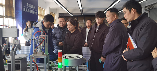調研伊始,調研組一行直奔核心實訓區域,實地檢閱龍職與省內優質高職聯合育人的實踐成效。走進實訓樓二樓電商實訓室,學生們熟練操控直播設備、清晰拆解產品賣點的實操場景,盡顯數字經濟專業的實踐活力;移步智能制造實訓室,8分鐘技能實訓井然有序,學生精準規范的操作、嫻熟的設備運用,彰顯溫職院合作賦能下省級優質智能制造專業群的扎實功底;工業機器人實訓室里,學生與智能設備的協同作業,搭配專業教師對“中高貫通課程體系”的詳細解讀,讓調研組對兩校“理實一體化”聯合教學理念贊不絕口。潘樂慧副處長現場點贊:“龍職與溫職院的專業共建精準對接產業需求,真正實現了‘中職筑基、高職拔高’的一體化培養目標!”