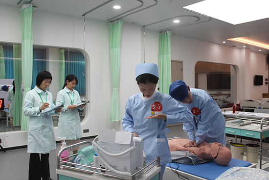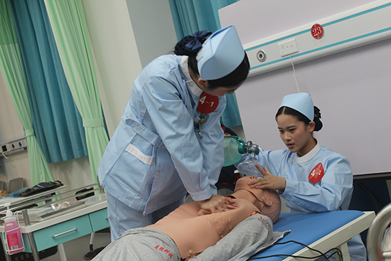 第一賽道中,選手們分工明確,心肺復蘇時按壓精準、呼吸規范,與時間“賽跑”。