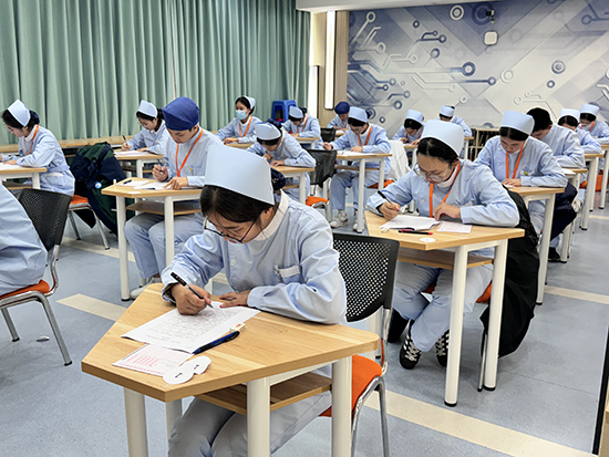 理論考場上,選手們沉著執筆,憑借扎實基礎流暢作答,盡顯對護理知識的熟練掌握。