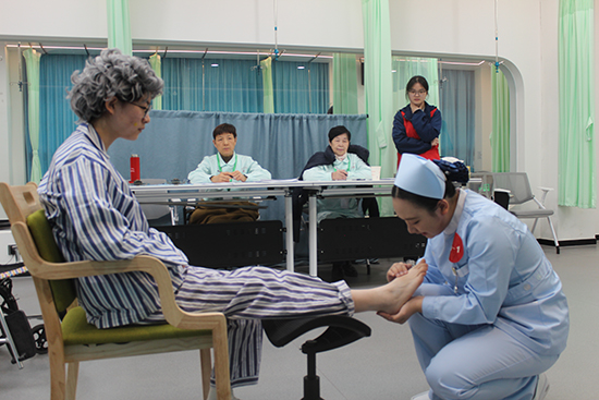 大賽設理論與技能兩大模塊,考評體系科學嚴謹。理論考試時長40分鐘,覆蓋護理基礎、急救規范等內容,占總成績10%,重點考察選手知識儲備;技能實操分兩個賽道,占比90%,更重實戰。