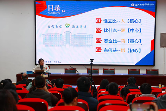 嘉興技師學院錢琴梅校長作了《以賽強師、向新育人:教學能力大賽的實踐突破與價值回歸》專題分享。她系統(tǒng)介紹了學校“一軸雙鏈、四線并進”的教學改革策略,即以技能競賽為軸心,聯(lián)動課程改革與教師發(fā)展,通過項目研發(fā)、團隊磨課、企業(yè)共建、成果轉化四條路徑,將競賽項目如“集水站水位智能控制系統(tǒng)”轉化為教學項目,有效提升了學生的技能達標率與教師的專業(yè)能力。