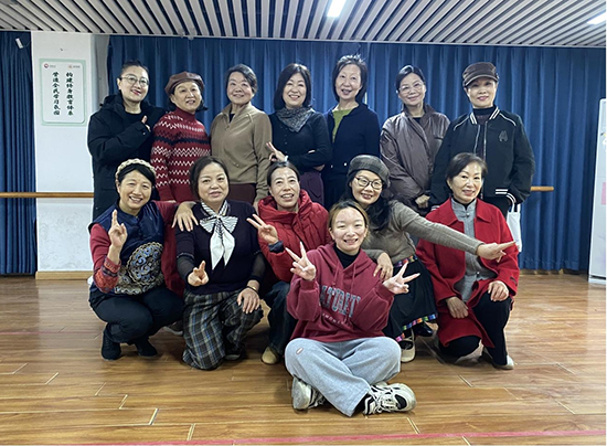 以《蘇幕遮》《江湖夜雨十年燈》等經(jīng)典舞曲為教材,從舞蹈身韻、肢體柔韌性訓(xùn)練到完整動作編排進(jìn)行系統(tǒng)教學(xué)。教師充分考慮老年學(xué)員的身體特點,科學(xué)調(diào)整動作難度,悉心指導(dǎo)手、眼、身、法、步的協(xié)調(diào)統(tǒng)一,讓學(xué)員在優(yōu)雅舞動中深切感受中華舞蹈的獨特魅力。