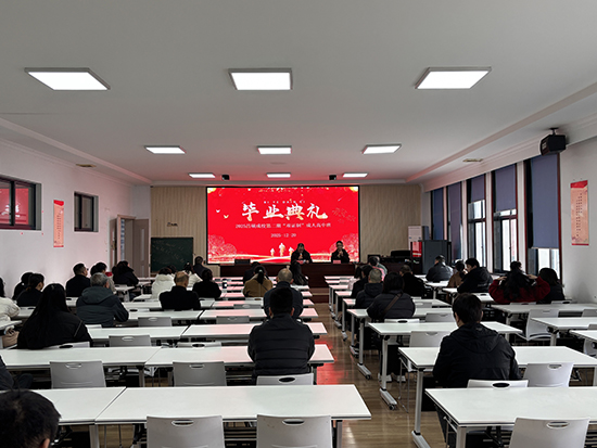 12月20日上午,安吉社區教育學院昌碩分院(安吉縣昌碩成校)2025 年第二批雙證制高中畢業生畢業儀式順利舉行。本次儀式采用 “線上 + 線下” 結合的形式,63名畢業生親臨現場,與老師、同學面對面分享結業喜悅;另有191名畢業生通過線上平臺同步參與,共同見證這一意義非凡的時刻。畢業儀式由副校長李世祥主持。