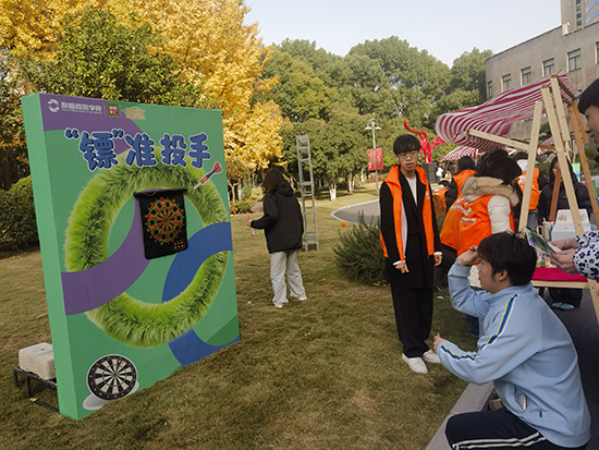 最難忘的是參與了數(shù)智商貿學院、鍋圈食匯與FM107浙江城市之聲共同策劃精心組織的“青春游園·圈個搭子“年華絮語游園會。銀杏樹下,“鏢”準投手、“水瓶穩(wěn)立”的游戲里,師生笑語不斷,洋溢著濃厚的青春氣息。我們和育英的學長學姐擠在攤位前,把陌生釀成熟稔——原來這就是“銜接”的溫度,不止是課程的遞進,更是青春的同頻。