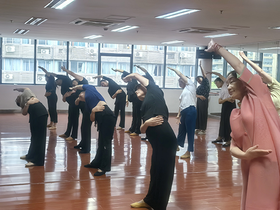 舞蹈房內活力滿滿,成為社區(qū)最靚麗的風景線。伴隨著歡快的音樂,舞蹈班學員們身著統(tǒng)一服裝翩翩起舞,整齊的動作、飽滿的精神狀態(tài),絲毫看不出他們的平均年齡已過六十。從基礎的肢體舒展到完整的舞蹈編排,從最初的羞澀拘謹?shù)饺缃竦淖孕糯蠓剑瑢W員們在每一次旋轉跳躍中重拾青春活力。“跳舞讓我身體越來越好,心情也像花兒一樣甜。”剛跳完《世界贈予我》的李奶奶擦著額頭的薄汗,笑容格外燦爛。