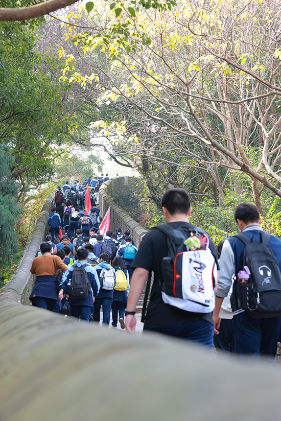 毅行,是奮斗的號角,是意志的淬煉,更是師生并肩、同窗攜手、彼此鼓舞的溫情旅程。隨著行程的推進,山風漸漸變得凜冽,汗水濕透了同學們的衣背,疲憊如同潮水一般逐漸侵襲著每個人的身軀。然而,沒有一人輕言放棄。大家相互攙扶,彼此加油鼓勁。在這艱難的攀登過程中,師生之間、同學之間的情誼愈發深厚。大家始終堅信:人生如行路,每一次咬牙堅持,都會在下一個轉角迎來柳暗花明的風景。