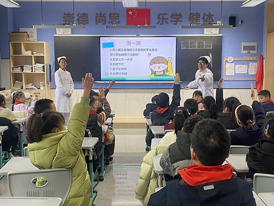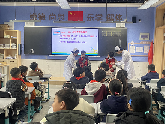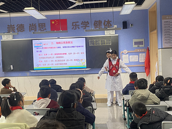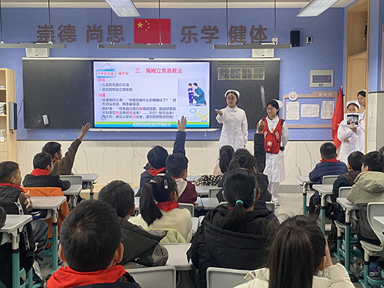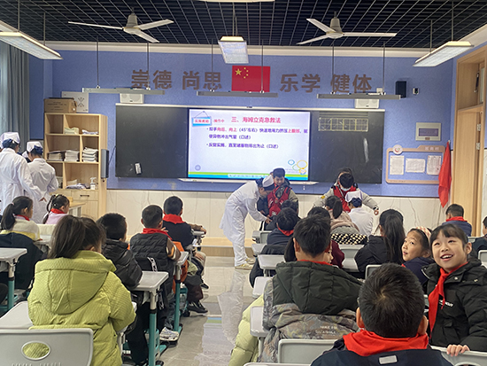為深化專業實踐教學,錘煉學生健康宣教能力,12月24日,海寧衛生學校(海寧市綜合高級中學)護理專業2509班學生前往江南小學,為三年級學生講授了一堂生動、專業的海姆立克急救科普課。本次課程由學生團隊自主設計與主講,她們們巧妙運用專業教具與趣味口訣,將復雜的急救知識轉化為小學生易懂易學的技能,圓滿完成了從“學習者”到“傳授者”的角色實踐。