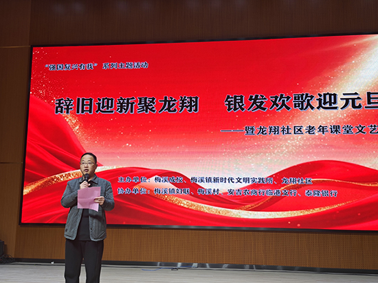 12月25日下午,梅溪村文化大禮堂內(nèi)張燈結(jié)彩、暖意融融,“辭舊迎新聚龍翔,銀發(fā)歡歌迎元旦”迎元旦暨龍翔老年學(xué)堂年終文藝匯演在此溫情上演。本次活動(dòng)由安吉縣社區(qū)教育學(xué)院梅溪分院(梅溪成校)、龍翔社區(qū)聯(lián)合主辦,多部門協(xié)辦,為轄區(qū)老年朋友獻(xiàn)上了一場精彩紛呈的文化盛宴。