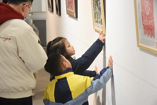 簡(jiǎn)短而莊重的開幕式后,與會(huì)嘉賓、師生及家長(zhǎng)一同移步展廳觀展。看到自己的作品陳列于展臺(tái)、懸掛于墻面,同學(xué)們難掩激動(dòng)與自豪,紛紛邀請(qǐng)父母合影留念。部分學(xué)生主動(dòng)向嘉賓介紹創(chuàng)作靈感與制作過程,分享作品背后的思考與故事。展廳內(nèi)氛圍熱烈,大家沉浸在濃厚的藝術(shù)氛圍中,交流對(duì)民間工藝的理解與感悟。嘉賓們興致盎然地欣賞每一件作品,不時(shí)點(diǎn)頭稱贊,并給予學(xué)生們熱情的鼓勵(lì)。