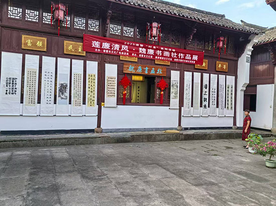 2025年“墨濃鄉村”系列活動自4月啟動以來,以全市23個鎮鄉(街道)為單元,累計舉辦27場鎮級書畫展,并同步開展27場“行走的美術館”惠民活動,將優質藝術資源送至509個村社。期間,魏廉書畫社精心打造“蓮廉清風·魏廉書畫社作品展”,展覽選址于魏廉村魏家塢自然村的魏家宗祠——太廉堂。展廳內翰墨飄香,一幅幅涵蓋國畫、書法等多種藝術形式的立軸作品整齊懸掛,既生動勾勒出諸暨鄉村的自然風光與人文底蘊,又巧妙融入清廉文化元素。諸暨市鎮村書畫社團聯盟成員代表與村民書法愛好者齊聚現場,共賞佳作、交流心得。此次系列活動,完美詮釋了藝術精品從鄉村孕育到城市展示的完整路徑,有力推動藝術深度融入鄉村肌理,以文化賦能共同富裕,為浙江高質量發展建設共同富裕示范區注入深厚鮮活的文化內涵。