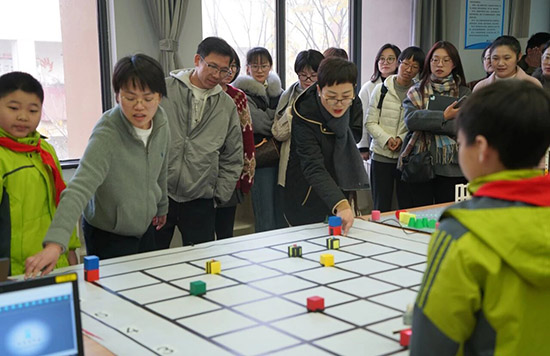 晨光微熹,在天長世紀(jì)小學(xué)校領(lǐng)導(dǎo)的陪同下,教師團(tuán)一行實(shí)地參觀了學(xué)校“世紀(jì)小鎮(zhèn)”8+N空間站。創(chuàng)客中心內(nèi),“小小創(chuàng)客代言人”自信演示實(shí)踐成果,3D打印設(shè)備、機(jī)器人競賽器材有序陳列,盡顯科創(chuàng)教育的蓬勃活力;體藝樓里,德育積分兌換評價(jià)機(jī)制的創(chuàng)新實(shí)踐令人眼前一亮,孩子們的點(diǎn)滴進(jìn)步被量化為“世紀(jì)通寶”,這種可感可觸的正向激勵(lì),讓教育更接地氣、更具溫度;金絲彩砂畫非遺工坊中,師生共創(chuàng)的作品精美絕倫,鋪展開一幅匠心傳承的生動(dòng)畫卷。以銀杏葉為校園IP的“小銀杏”系列課程更是讓人嘆為觀止,從“銀杏節(jié)”跨學(xué)科實(shí)踐活動(dòng),到銀杏主題藝術(shù)展的創(chuàng)意呈現(xiàn),這片金黃不僅是校園的自然景致,更成為推進(jìn)課程融合、落實(shí)五育并舉的特色文化載體,將天長世紀(jì)小學(xué)的教育巧思藏入每一片葉脈。合唱教室內(nèi),悠揚(yáng)童聲陣陣回蕩,老師們既沉醉于美育浸潤的濃厚氛圍,更驚嘆于學(xué)校原創(chuàng)音樂入選教材的亮眼成果,深切見證藝術(shù)教育扎根校園的生長力量。博愛墻的溫情寄語、博學(xué)館的厚重底蘊(yùn)、博藝小舞臺(tái)的鮮活展演,一個(gè)個(gè)特色場館串聯(lián)起“環(huán)境育人”的生動(dòng)圖景,讓“博愛、博學(xué)、博創(chuàng)”的辦學(xué)核心理念真正觸手可及。