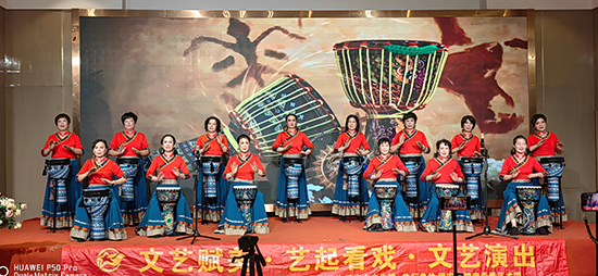 匯報演出在林小微、陳萍玉等14位學員帶來的《非洲鼓》激情串燒中熱烈開場。鏗鏘有力、節奏鮮明的鼓點,瞬間點燃全場熱情,不僅展現了學員們多元的藝術才能,更傳遞出他們對生活的熱愛與對未來的昂揚憧憬。