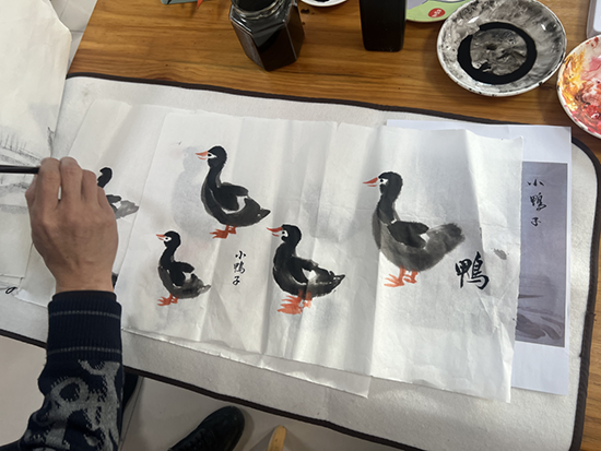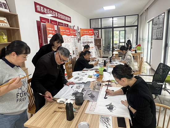 本期國畫班秉持“零基礎、小班化、重體驗”的辦班理念,為社區書畫愛好者量身定制了一套階梯式課程體系。宗漢社區教育中心特邀具有豐富教學經驗的本地畫家孫岳真主講,從最基礎的“文房四寶”認知、執筆運腕技巧講起,通過“理論講解—示范演示—手把手輔導—作品互評”的沉浸式教學閉環,循序漸進地引領學員們徜徉于水墨世界。學員們在老師悉心指導下,從最初勾勒線條時的生澀顫抖,到逐漸掌握水墨濃淡干濕的微妙變化,最終能夠獨立完成一幅幅意趣盎然的蝦蟹小品或清雅挺拔的梅竹圖景,實現了從“旁觀者”到“創作者”的美麗蝶變。