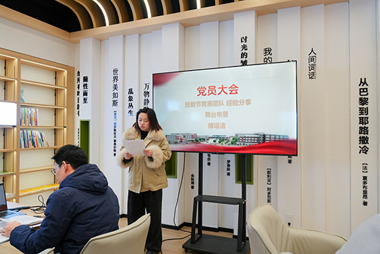 會議邀請兩位在2025年市級技能競賽中表現(xiàn)突出的黨員教師分享經(jīng)驗。傅瑤潔、魏小勇講述了面對備賽壓力、技術(shù)瓶頸與激烈競爭時,如何以黨員身份迎難而上,開展思想動員、牽頭技術(shù)攻堅、協(xié)調(diào)多方資源的真實經(jīng)歷。深夜工作室的燈光、團(tuán)隊磨合中的思想引領(lǐng)、見證學(xué)生在挫折中成長的欣慰……一個個生動細(xì)節(jié),詮釋了“黨建+專業(yè)”的實踐內(nèi)涵,彰顯了黨員教師走在前、作表率的擔(dān)當(dāng)精神,為全體與會者樹立了可學(xué)可感的身邊榜樣。