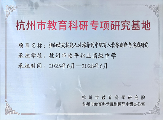 本年度共孵化各級各類教科研成果196項,其中省級課題5項,省市區級教學成果獎7項(省教學成果獎一等獎1項,市教學成果獎一、二等獎3項,區首屆教學成果獎一、二等獎3項),2個案例入選2025年杭州市中等職業教育改革典型案例。“迷你賽道”和“以名企潤專業 以就業促成長”兩項教學成果在“臨平研訓”公眾號推介。學校獲評“杭州市教育科研專項研究基地”,以研興教、校城共生的科研生態持續深化。