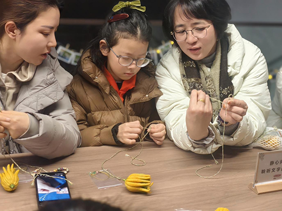 本次活動依托學校的課程開發經驗,與專業場館共同打磨形成特色實踐課程。課程《自然與人文的色彩實驗》注重自然科學認知與人文精神培養的融合,將皋亭山本地生物多樣性知識、植物文化寓意(如佛手所象征的“吉祥如意”)、傳統手工藝勞動等內容有機結合。社區學校教師全程參與設計與指導,確?;顒觾热菁染呓逃?,又貼合家庭參與的實際,有效提升了社區家庭科學素養、審美情趣和勞動實踐能力。