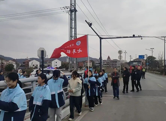 2025年12月31日上午,諸暨市楓橋鎮初級中學組織七年級、八年級全體師生,聯合紅楓義警隊員,在楓橋江畔開展了一場全長6公里的徒步毅行活動,以昂揚向上的姿態迎接新年到來。