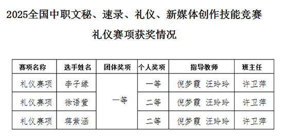 喜訊傳來(lái),捷報(bào)飛至!為期三天的2025全國(guó)中職文秘、速錄、禮儀、新媒體創(chuàng)作技能競(jìng)賽在浙江省桐鄉(xiāng)市衛(wèi)生學(xué)校圓滿收官。杭州市富陽(yáng)區(qū)職業(yè)教育中心學(xué)子憑借扎實(shí)的專業(yè)功底、出色的臨場(chǎng)發(fā)揮和卓越的綜合素養(yǎng),一路披荊斬棘,在全國(guó)300多名選手,16個(gè)團(tuán)體及個(gè)人比賽中,一舉斬獲9金7銀8銅的好成績(jī),用實(shí)力書(shū)寫(xiě)了中職生的技能榮光。謹(jǐn)此,向所有獲獎(jiǎng)同學(xué)表示最熱烈的祝賀!向辛勤指導(dǎo)的老師們致以最崇高的敬意!向關(guān)心支持此項(xiàng)競(jìng)賽的領(lǐng)導(dǎo)們表示最誠(chéng)摯的感謝!