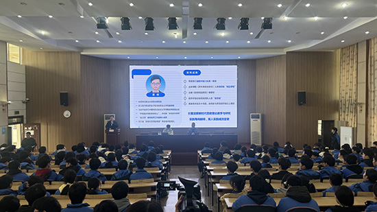 曹明副教授是理論宣講領(lǐng)域的知名專家,曾主講的《浙水泱泱文脈長》課程在第二屆“我學(xué)我講新思想”水利青年理論宣講活動(dòng)中從百余個(gè)作品中脫穎而出,入選全國“精品課程”,其本人也被評(píng)為“水利青年講師”與“共和國水利故事講述人”。在講座中,曹明副教授延續(xù)其一貫的生動(dòng)風(fēng)格,通過豐富的案例與深入的剖析,將習(xí)近平文化思想的宏大敘事與職業(yè)教育的特點(diǎn)、青年學(xué)生的成長緊密結(jié)合。他著重闡釋了“工匠精神”的時(shí)代內(nèi)涵與文化根基,引導(dǎo)學(xué)生深刻理解技術(shù)技能中蘊(yùn)含的文化價(jià)值與創(chuàng)新使命,鼓勵(lì)大家立足專業(yè)、扎根文化,成為堪當(dāng)民族復(fù)興重任的時(shí)代新人。